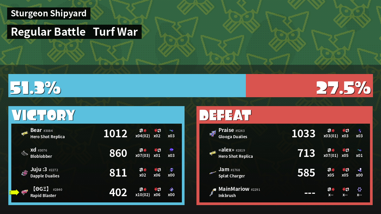 Kills / Deaths | 8 + 2 / 6 > Kill Ratio: 1.33 | ||
