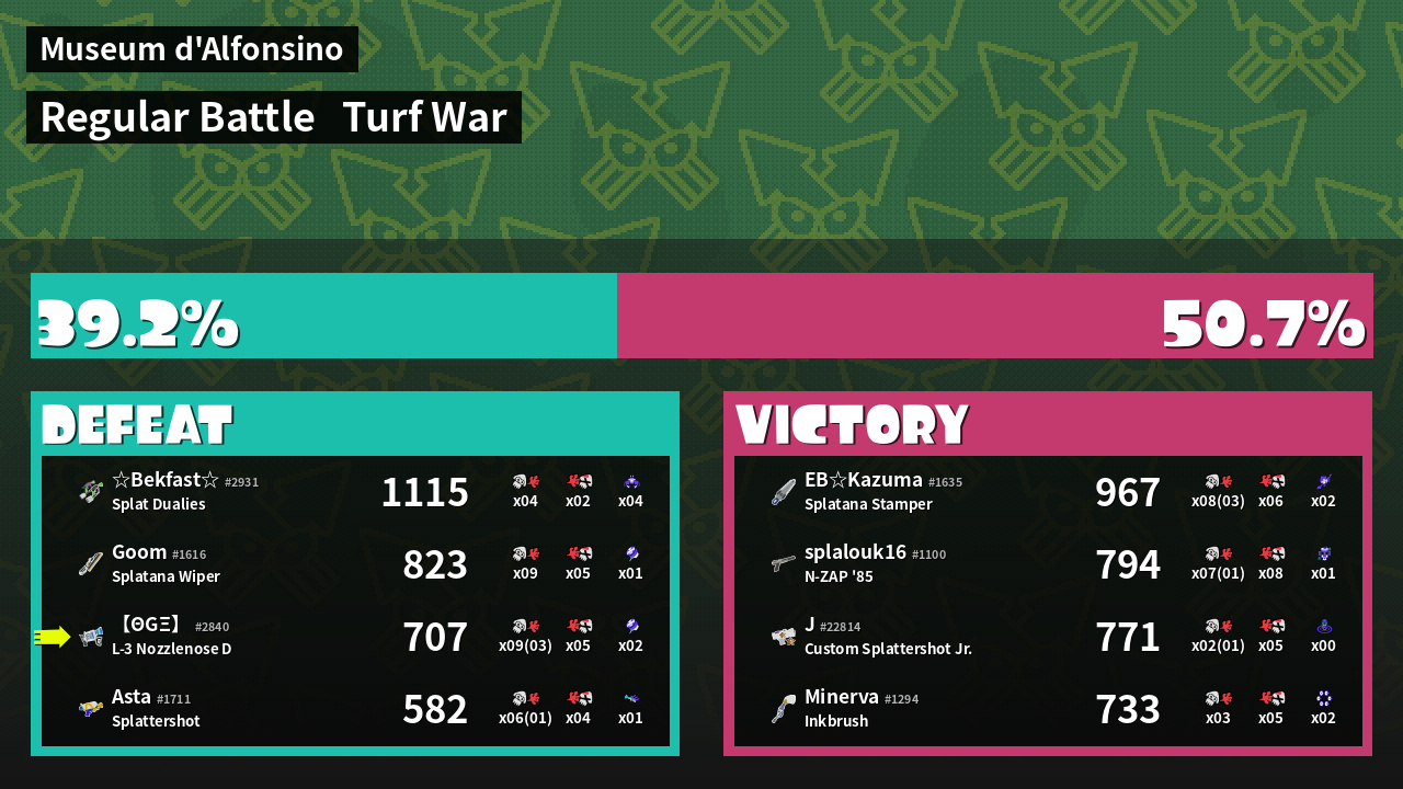 | Medals | #1 Overall Splatter #1 Splat Assister #1 Base Defender | ||