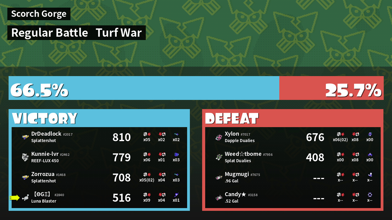 | Medals | #1 Overall Splatter #1 Enemy-Base Inker #1 Enemy Splatter | ||