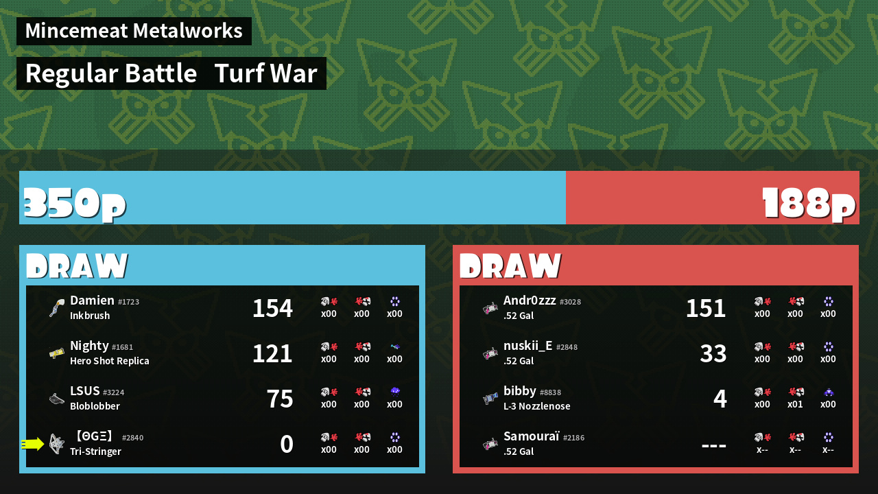 Kills / Deaths | 0 + 0 / 0 = Kill Ratio: 1.00 | ||