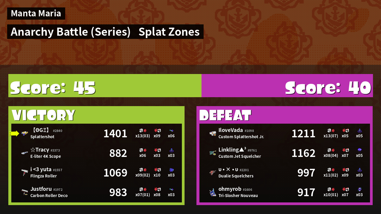 | Medals | #1 Overall Splatter #1 Splat Zone Inker #1 Splat Zone Guard | ||