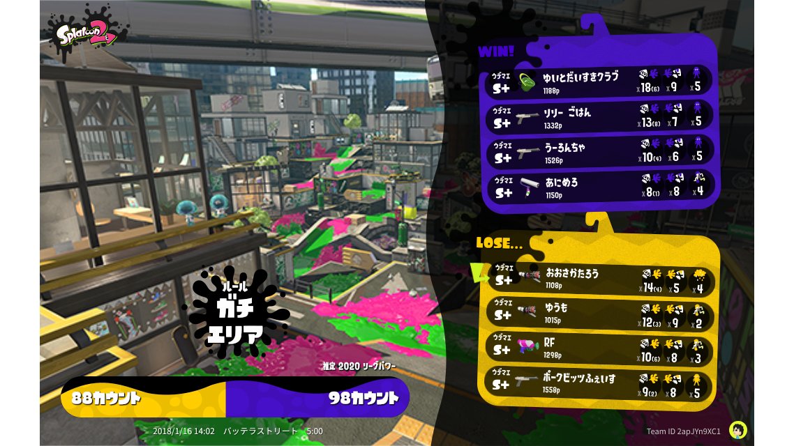 | Name | Weapon | Level | Rank | Inked | k+a/sp | k/d |