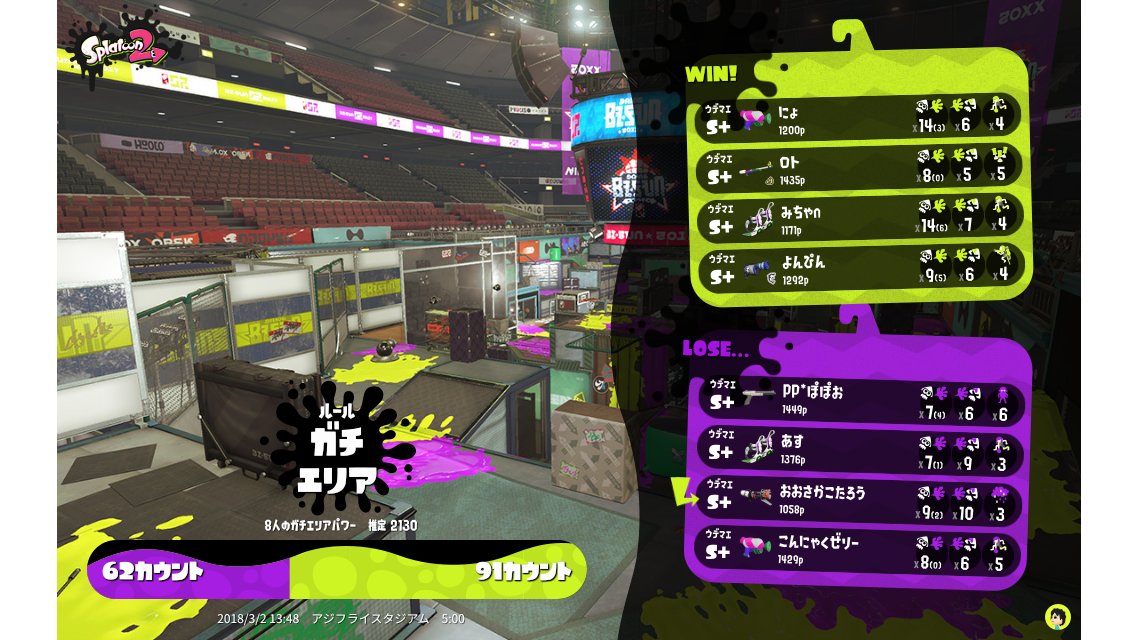 | Mode | Splat Zones - Ranked Battle |