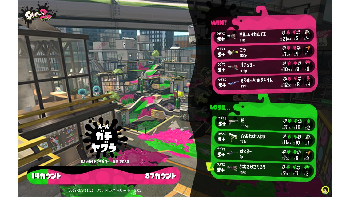 | Name | Weapon | Level | Rank | Inked | k+a/sp | k/d |