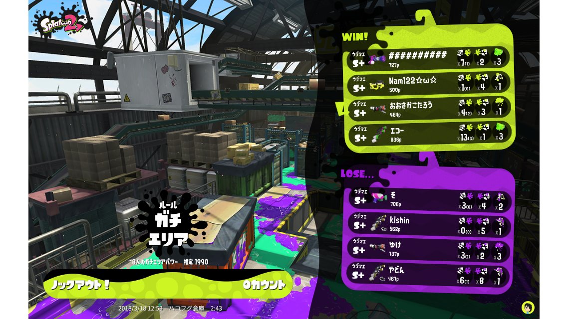 | Mode | Splat Zones - Ranked Battle | ||||||||||||||||||||||||||||||||||