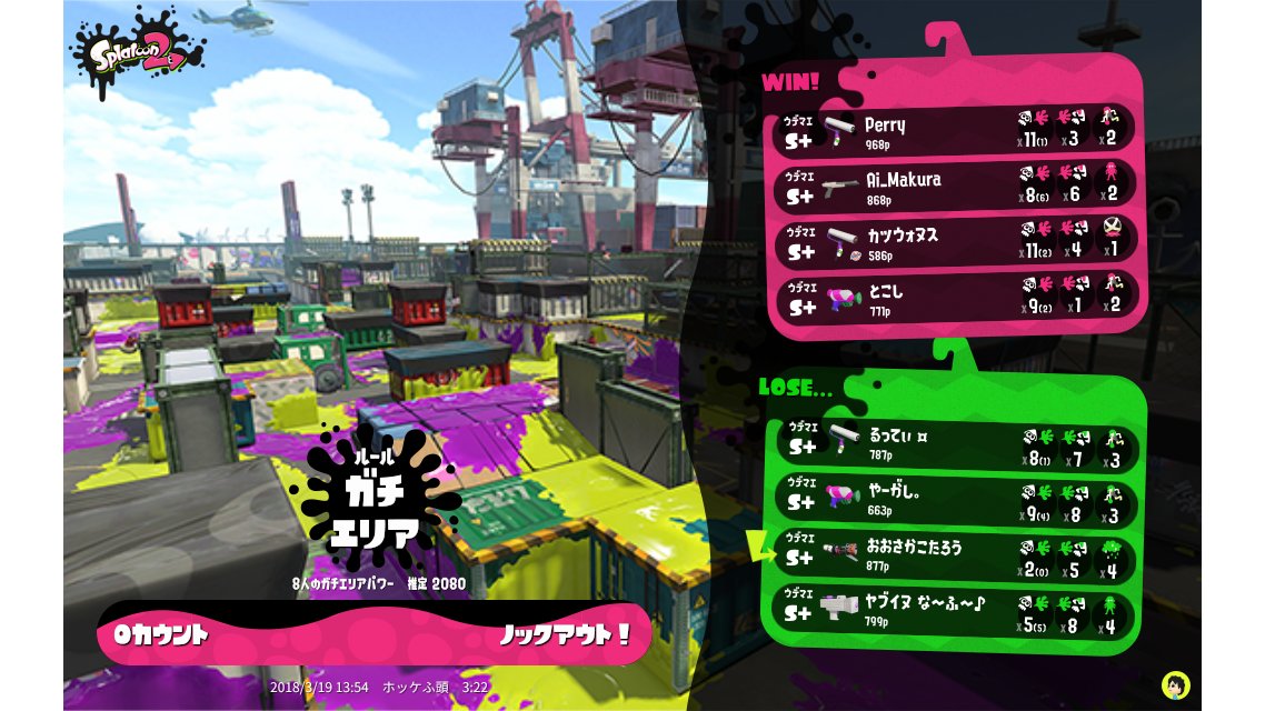 | Mode | Splat Zones - Ranked Battle | ||||||||||||||||||||||||||||||||||