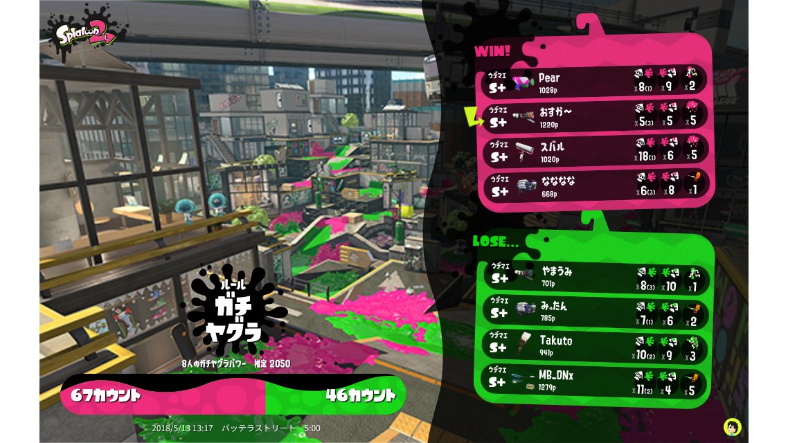 | Name | Weapon | Level | Rank | Inked | k+a/sp | k/d |
