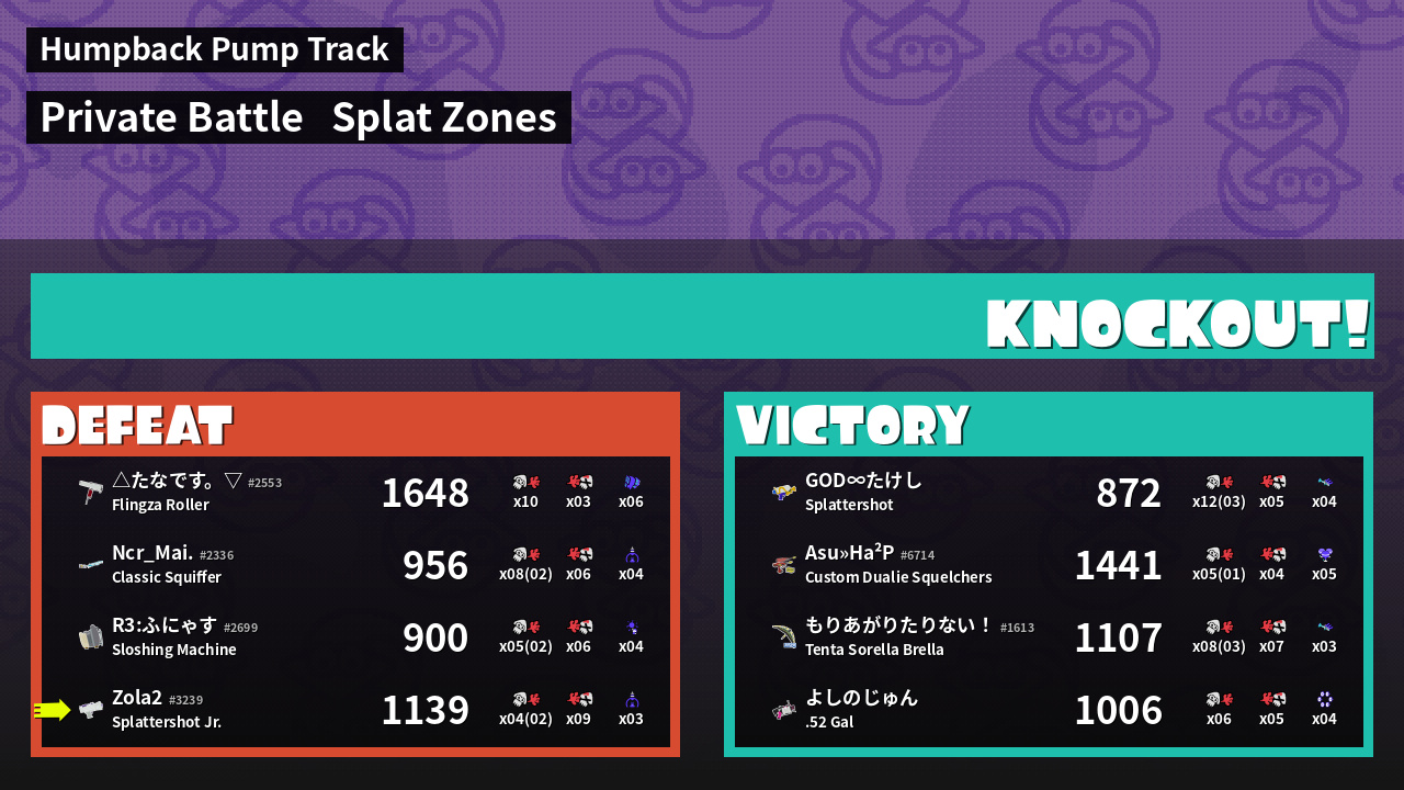 | Medals | #1 Splat Assister #1 Ground Traveler #1 Ink Consumer | ||