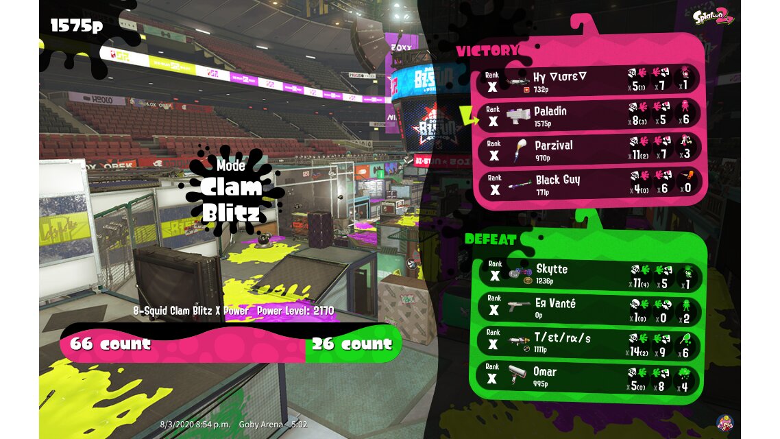 | Mode | Clam Blitz - Ranked Battle | ||||||||||||||||||||||||||||||||||