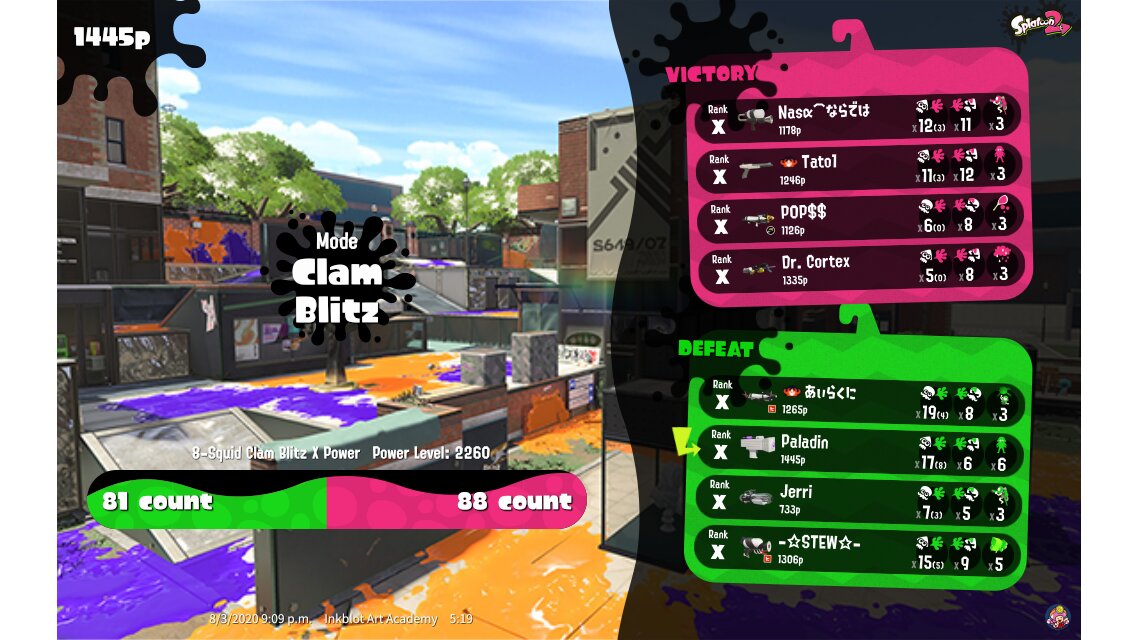 | Mode | Clam Blitz - Ranked Battle | ||||||||||||||||||||||||||||||||||