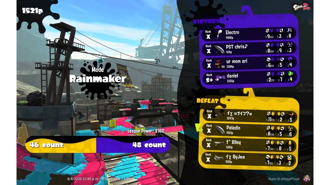 | Mode | Rainmaker - League Battle (Quad) | |||||||||||||||||||||||||||||||||||||
