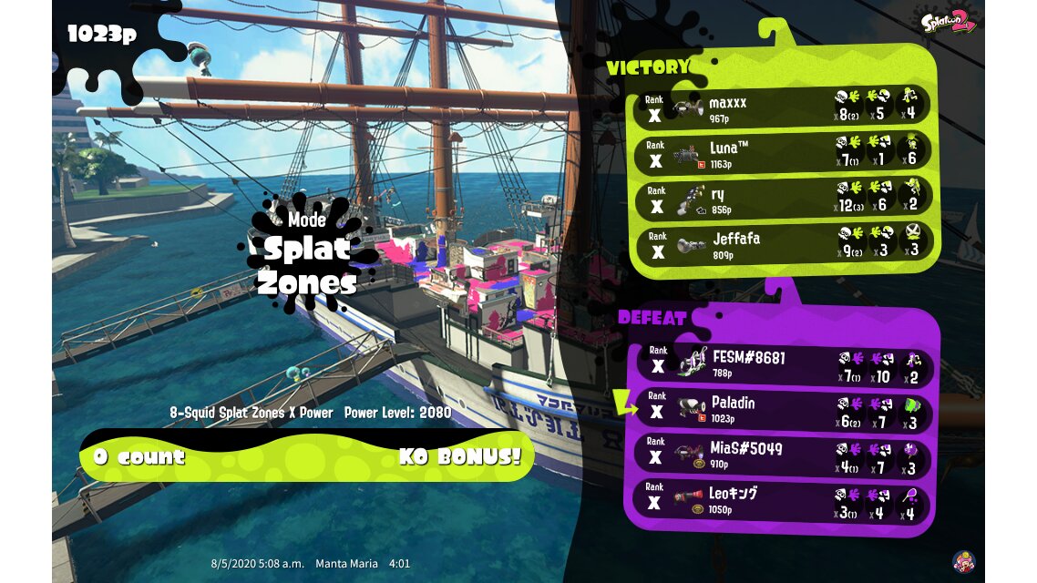 | Mode | Splat Zones - Ranked Battle | ||||||||||||||||||||||||||||||||||||||||