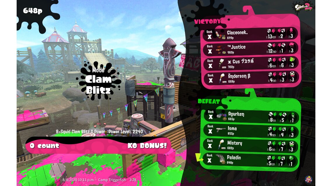 | Mode | Clam Blitz - Ranked Battle | |||||||||||||||||||||||||||||||||||||