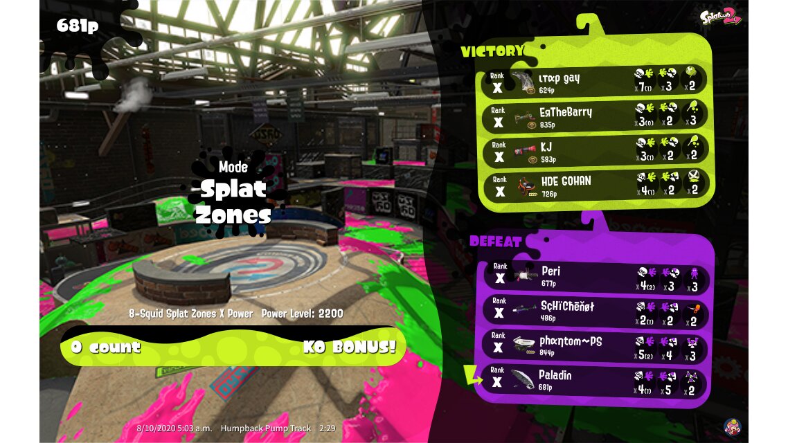 | Mode | Splat Zones - Ranked Battle | |||||||||||||||||||||||||||||||||||||