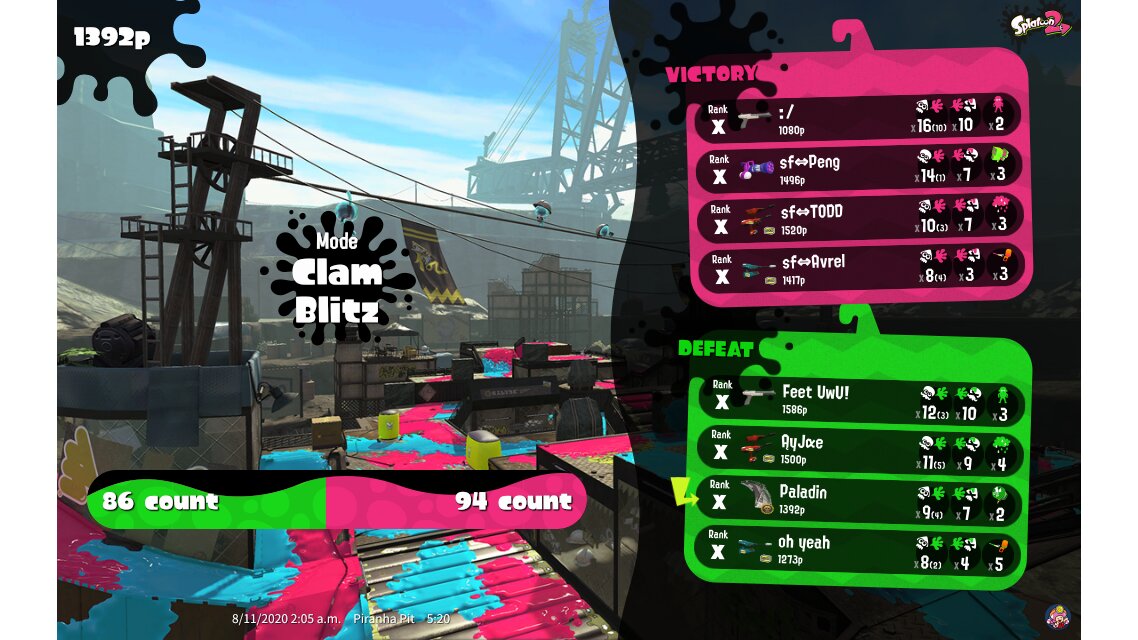 | Mode | Clam Blitz - Private Battle | |||||||||||||||||||||||||||||||||||||