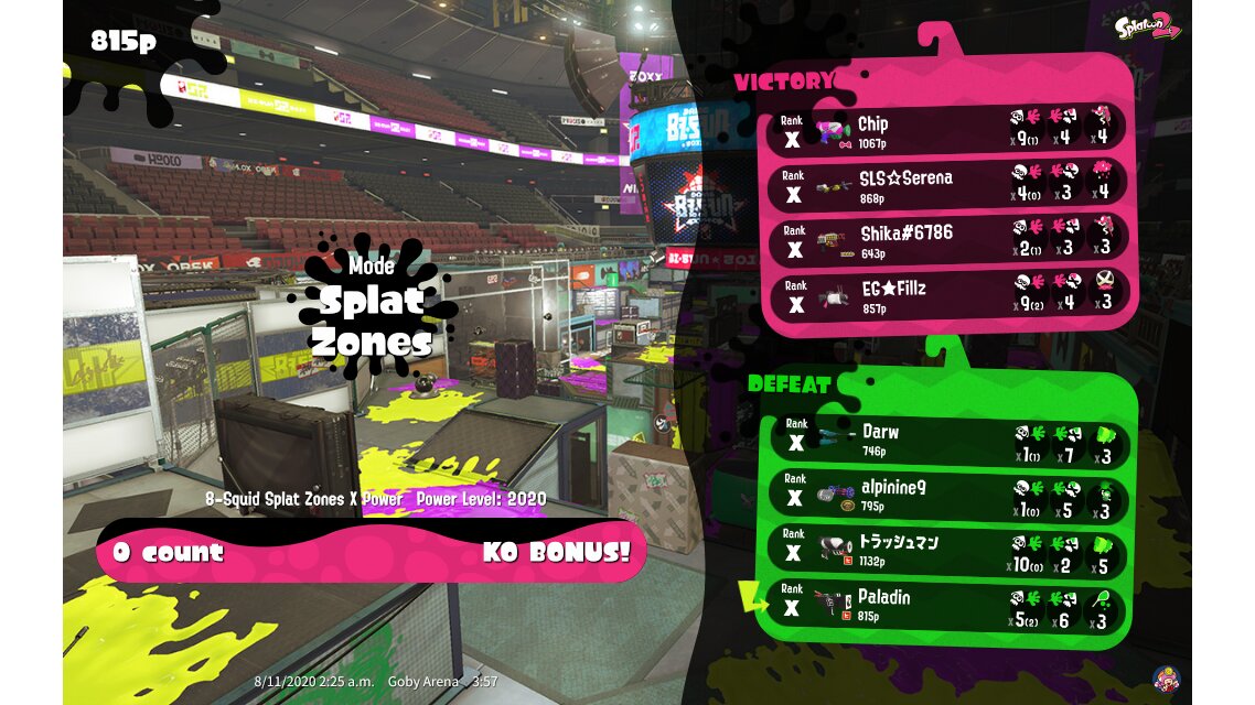 | Mode | Splat Zones - Ranked Battle | |||||||||||||||||||||||||||||||||||||