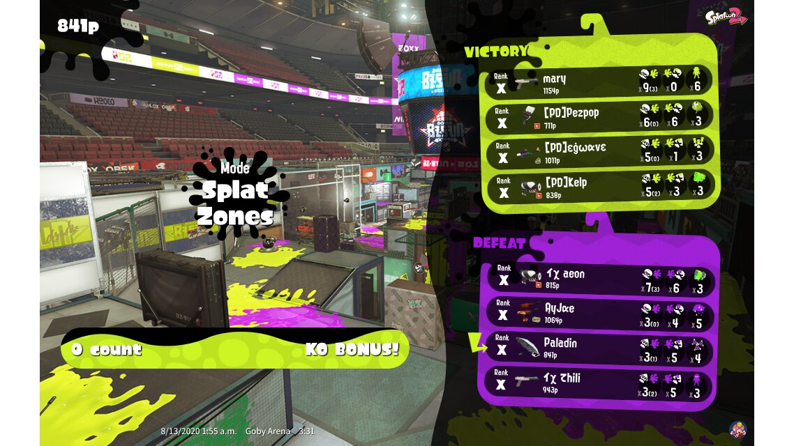 | Mode | Splat Zones - Private Battle | ||||||||||||||||||||||||||||||||||