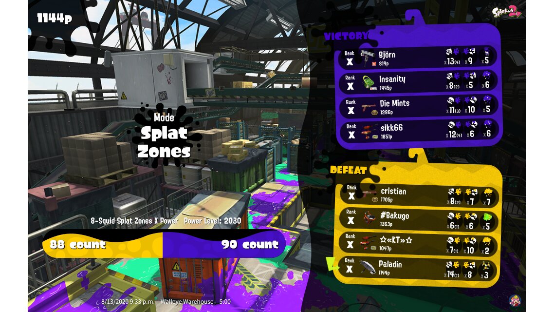 | Mode | Splat Zones - Ranked Battle | |||||||||||||||||||||||||||||||||||||
