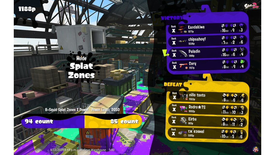 | Mode | Splat Zones - Ranked Battle | |||||||||||||||||||||||||||||||||||||