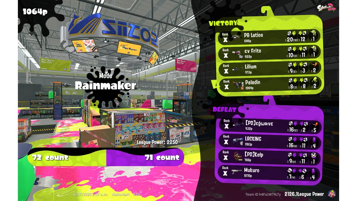 | Mode | Rainmaker - League Battle (Quad) | |||||||||||||||||||||||||||||||||||||