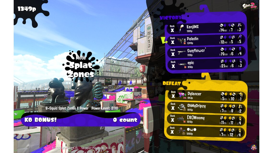 | Mode | Splat Zones - Ranked Battle | |||||||||||||||||||||||||||||||||||||