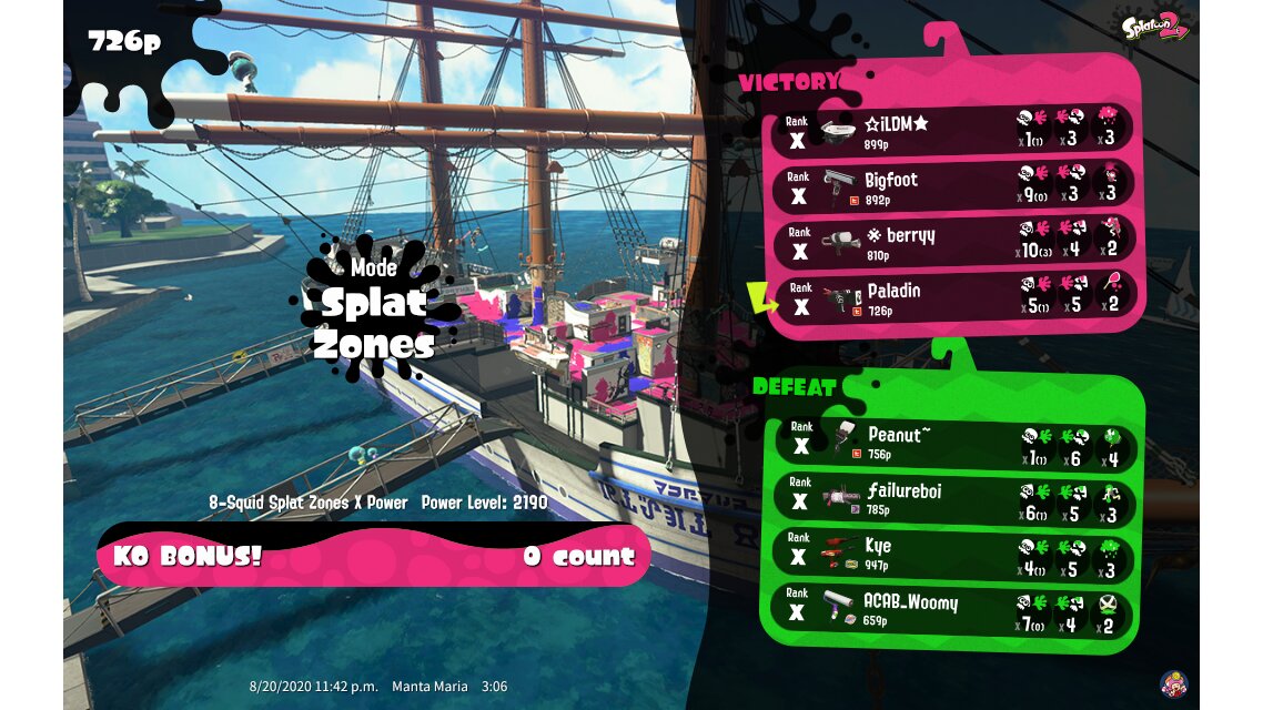 | Mode | Splat Zones - Ranked Battle | |||||||||||||||||||||||||||||||||||||