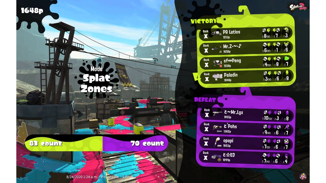 | Mode | Splat Zones - Private Battle | ||||||||||||||||||||||||||||||||||
