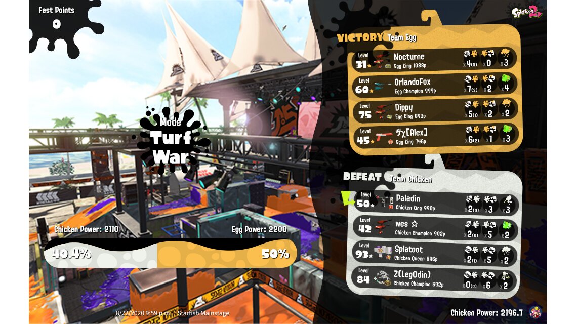 | Splatfest Power | 2,196.7 | |||||||||||||||||||||||||||||||||||||