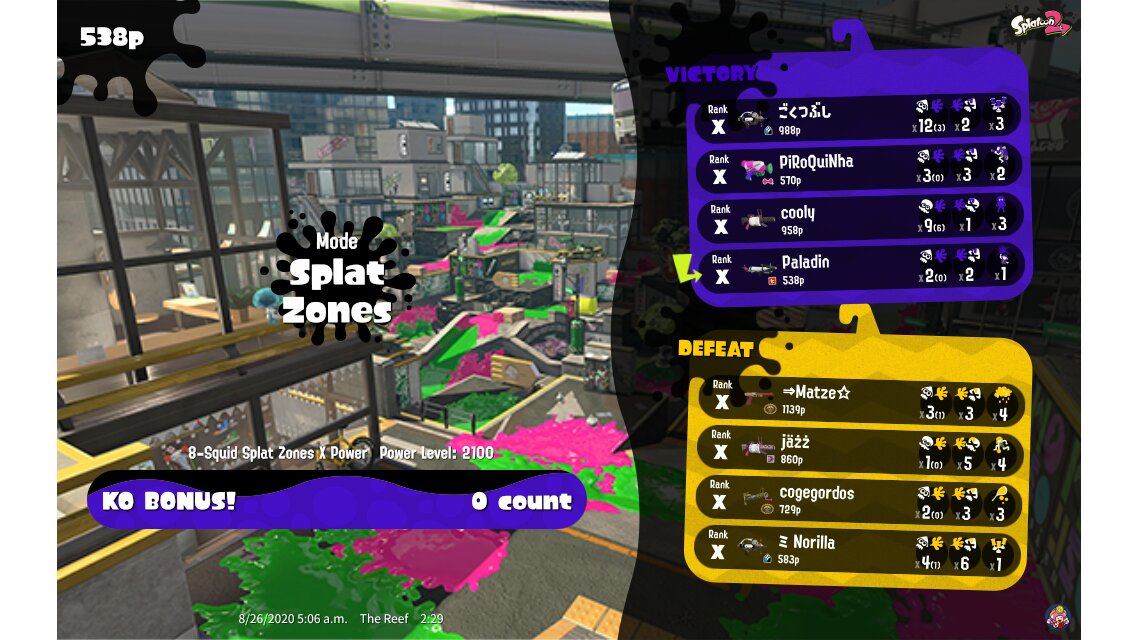 | Mode | Splat Zones - Ranked Battle | ||||||||||||||||