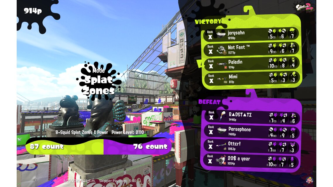 | Mode | Splat Zones - Ranked Battle | ||||||||||||||||