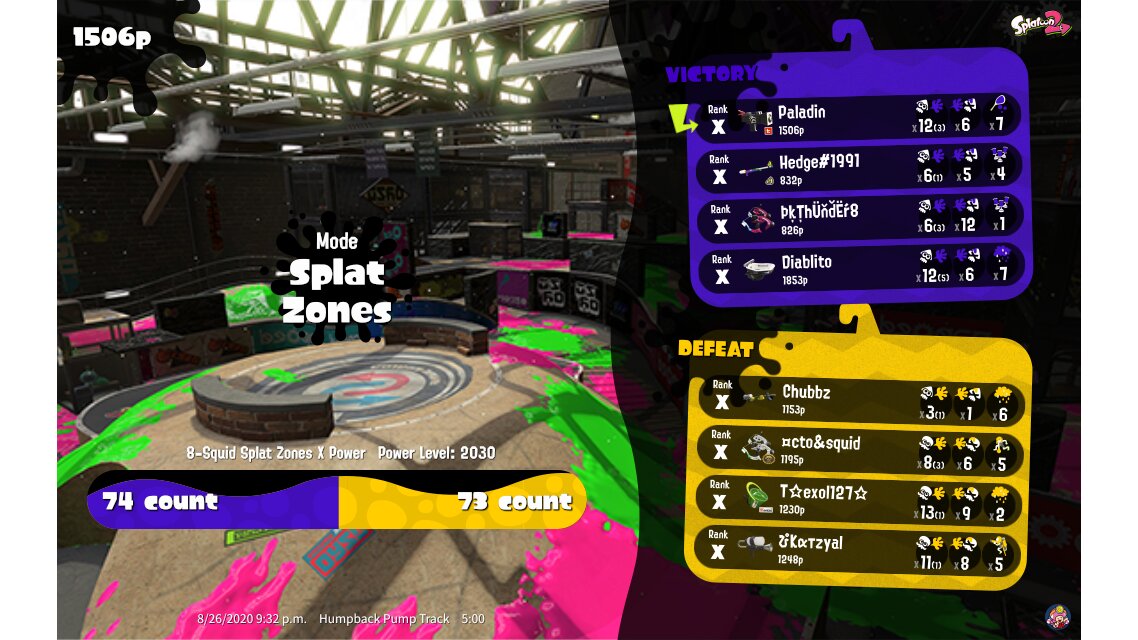 | Mode | Splat Zones - Ranked Battle | |||||||||||||||||||||||||||||||||||||