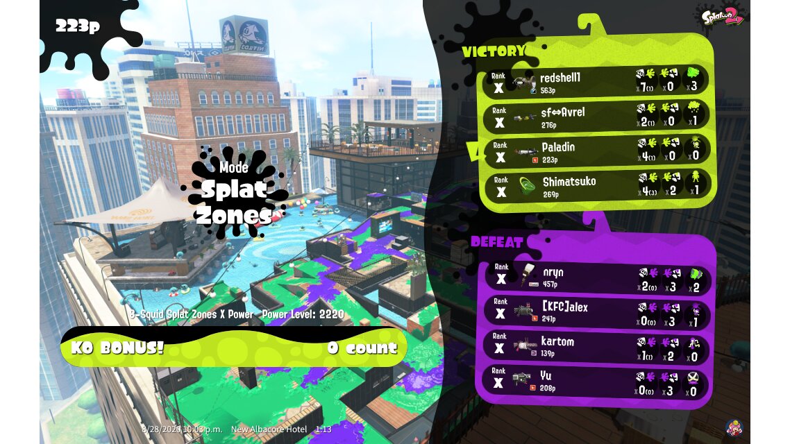 | Mode | Splat Zones - Ranked Battle | ||||||||||||||||