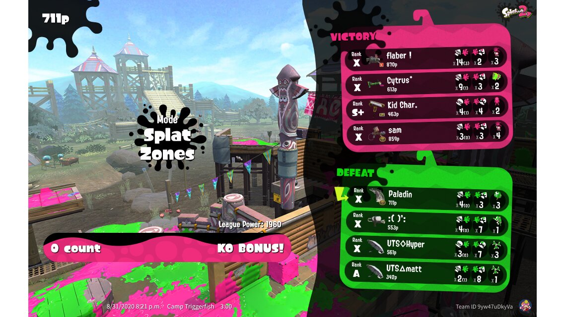 | Mode | Splat Zones - League Battle (Twin) | |||||||||||||||||||||||||||||||||||||
