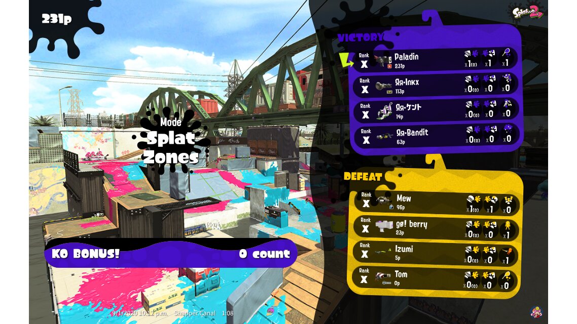 | Mode | Splat Zones - Private Battle | |||||||||||||||||||||||||||||||||||||