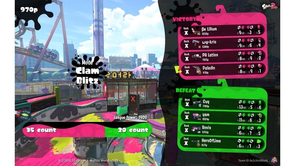 | Mode | Clam Blitz - League Battle (Quad) | |||||||||||||||||||||||||||||||||||||