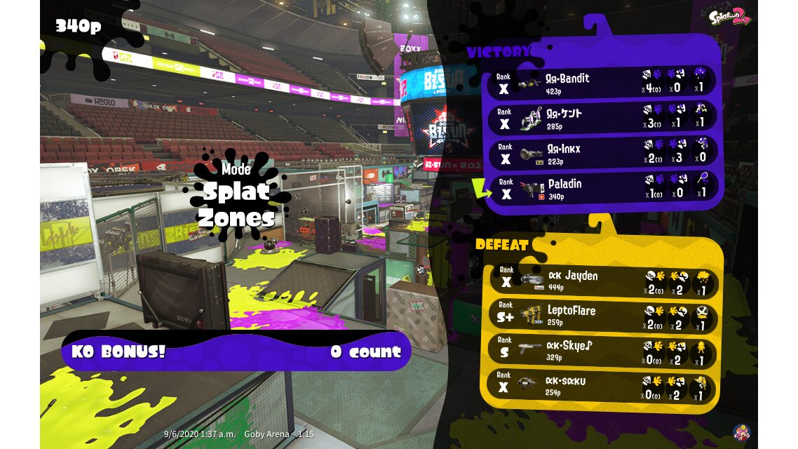 | Mode | Splat Zones - Private Battle | |||||||||||||||||||||||||||||||||||||
