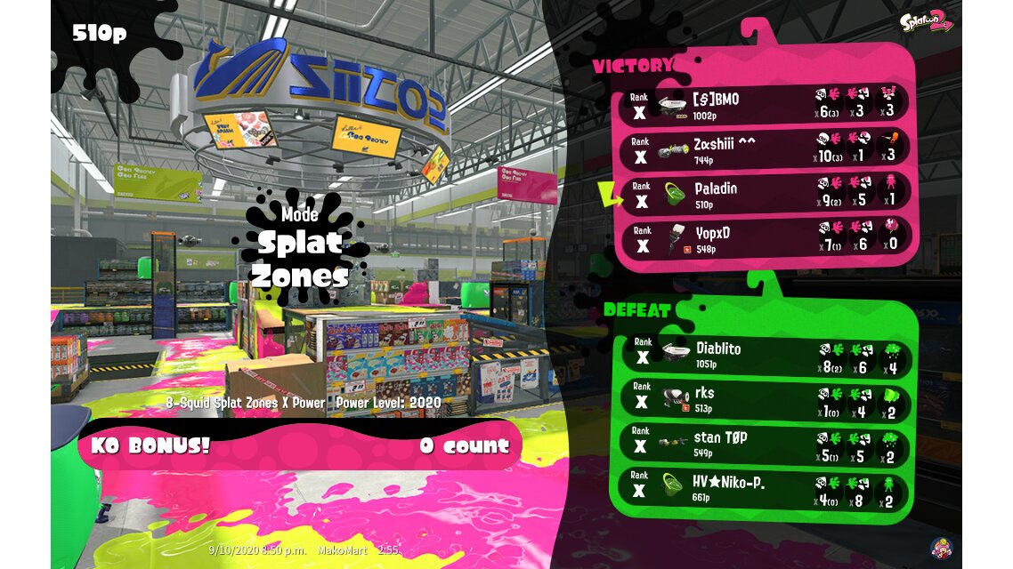 | Mode | Splat Zones - Ranked Battle | ||||||||||||||||||||||||||||||||||