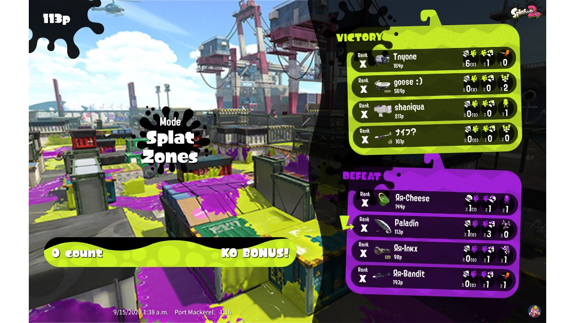 | Mode | Splat Zones - Private Battle | |||||||||||||||||||||||||||||||||||||