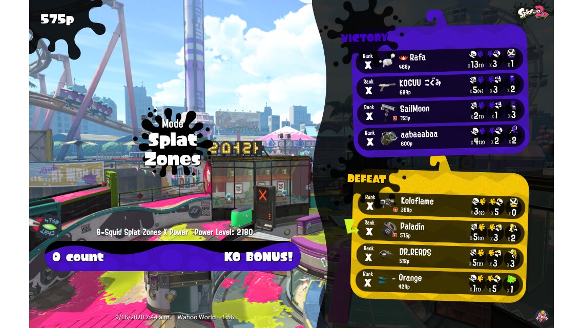 | Mode | Splat Zones - Ranked Battle | |||||||||||||||||||||||||||||||||||||