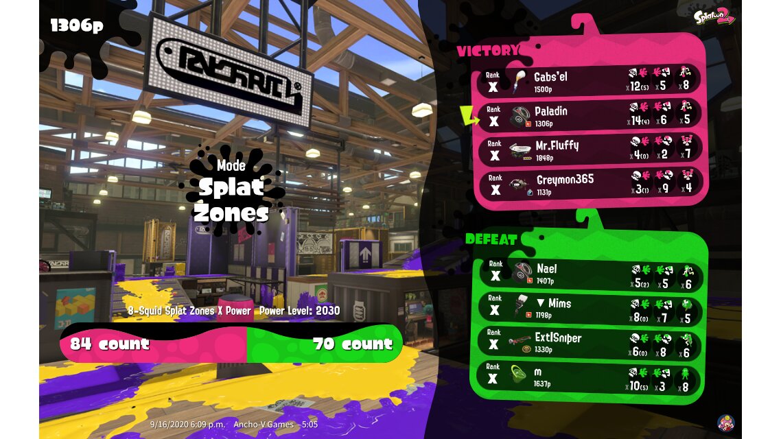 | Mode | Splat Zones - Ranked Battle | |||||||||||||||||||||||||||||||||||||