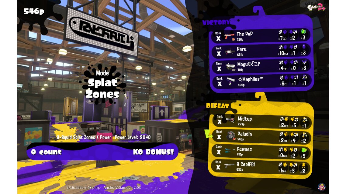 | Mode | Splat Zones - Ranked Battle | ||||||||||||||||||||||||||||||||||||||||