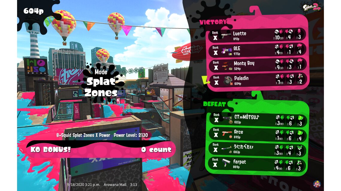 | Mode | Splat Zones - Ranked Battle | ||||||||||||||||||||||||||||||||||