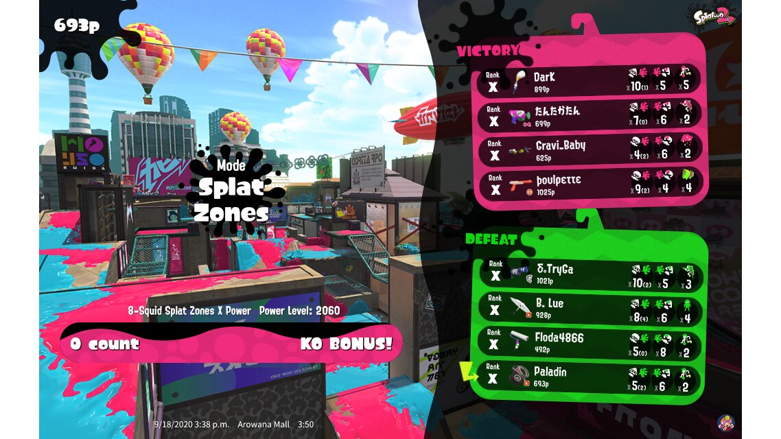 | Mode | Splat Zones - Ranked Battle | ||||||||||||||||||||||||||||||||||