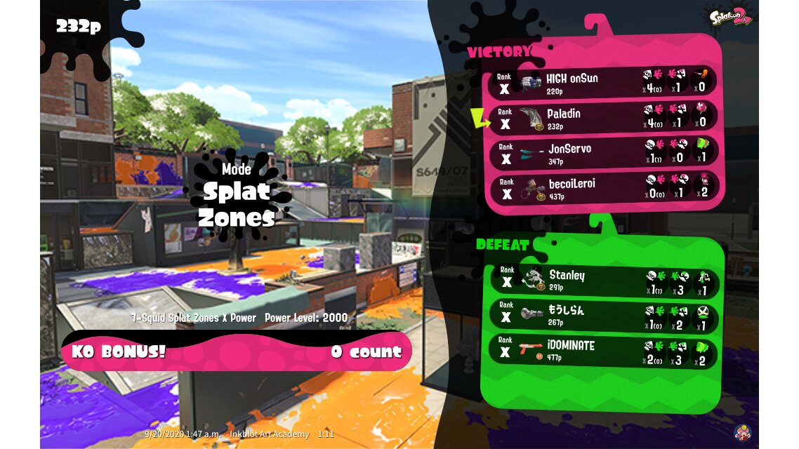 | Mode | Splat Zones - Ranked Battle | |||||||||||||||||||||||||||||||||||||