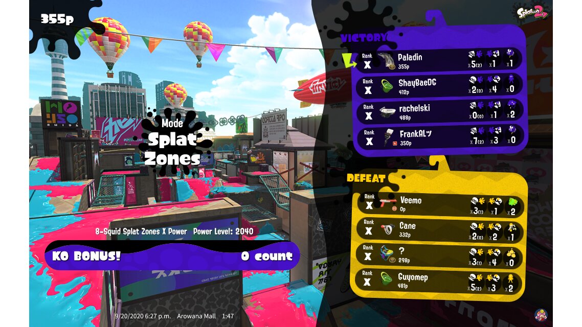 | Mode | Splat Zones - Ranked Battle | |||||||||||||||||||||||||||||||||||||