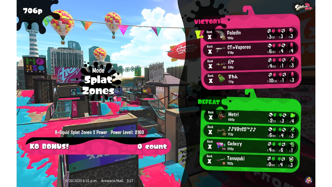 | Mode | Splat Zones - Ranked Battle | |||||||||||||||||||||||||||||||||||||
