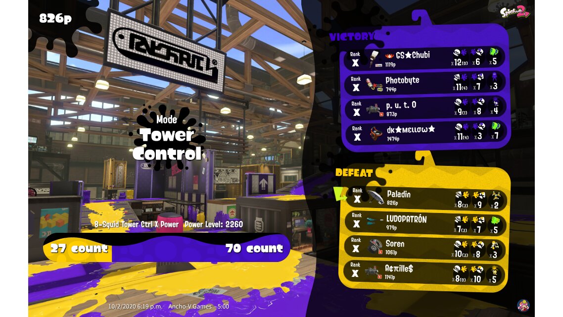 | Mode | Tower Control - Ranked Battle | ||||||||||||||||||||||||||||||||||||||||