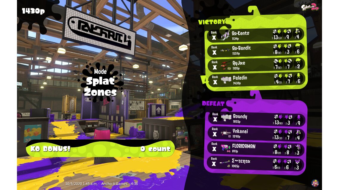 | Mode | Splat Zones - Private Battle | |||||||||||||||||||||||||||||||||||||