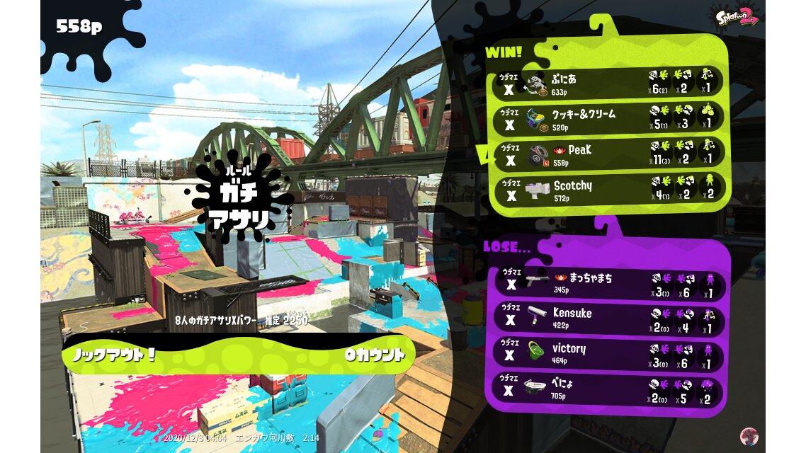 | Name | Weapon | Level | Rank | Inked | k+a/sp | k/d |
