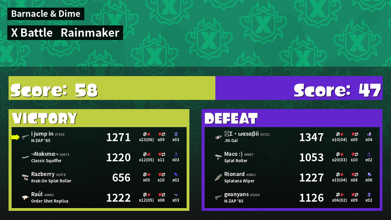 | Mode | Rainmaker - X Battle |